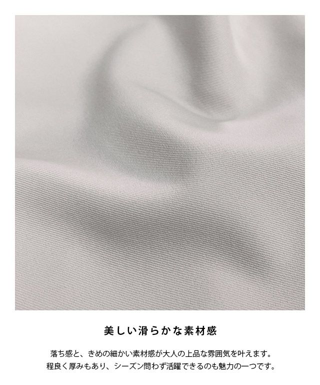 落ち感と、きめの細かい素材感が大人の上品な雰囲気を叶えます。程良く厚みもあり、シーズン問わず活躍できるところも魅力の一つです。 ストンと落ちるストレートシルエットスカート。内側にスリットの入ったラップデザインがシャープで抜け感のあるスタイリングに。サイドベルトでアクセントをつけた一枚です。歩いてもめくれない仕様になっているので足さばきもしやすいデザイン。ON/OFF問わず着用できます。 【ブランド】 RASW(ラス)