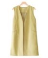 すっきりとしたノーカラーとサイドスリットで抜け感のあるロングジレ。すとんとしたIラインと長めの丈感でこなれた印象に。ボタンの無いトッパータイプなので、どんなアイテムともさらっと合わせやすいところも魅力の一つです。バックにはボックスタックを施し、歩くたび動きのあるシルエットに仕上げました。