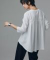シンプルなロンTながらもバックスタイルにはたっぷりとギャザーをとったフレアTシャツ。フロントはバランスよく着られる丈感にし、バックを長くすることでヒップ周りをしっかりとカバーしてくれるのも魅力の一つです。7分袖でロングシーズン着用頂けるアイテムです。