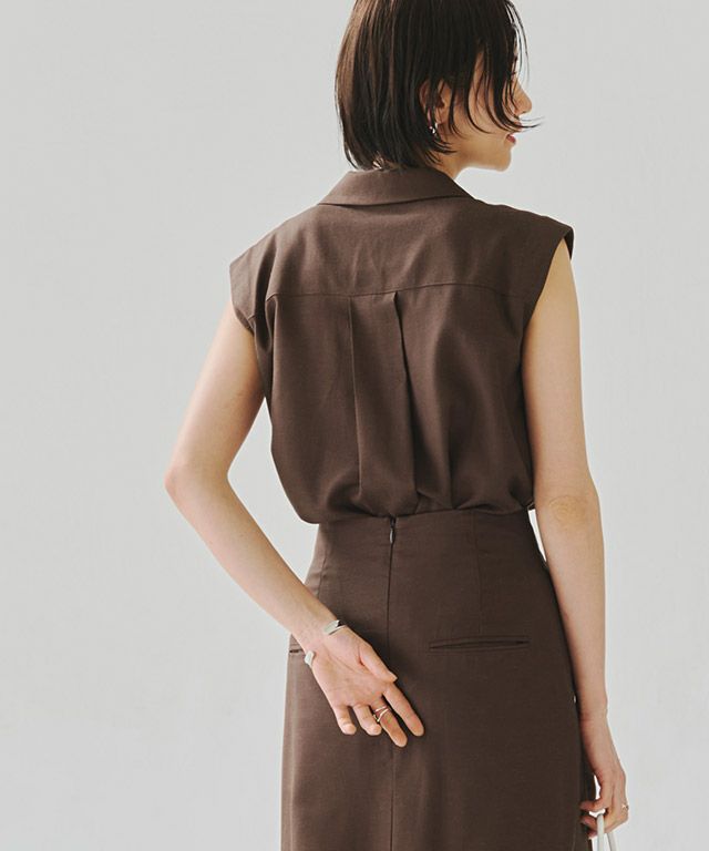 [トップス]着丈はお尻が3分の2隠れる丈感でした。袖丈は肩が隠れます。身幅はゆとりがありました。リネン混の素材が夏でも着心地が良いです。表面感がリネン特有のガサガサ感は少ないので、キレイめなスタイリングが可能です。