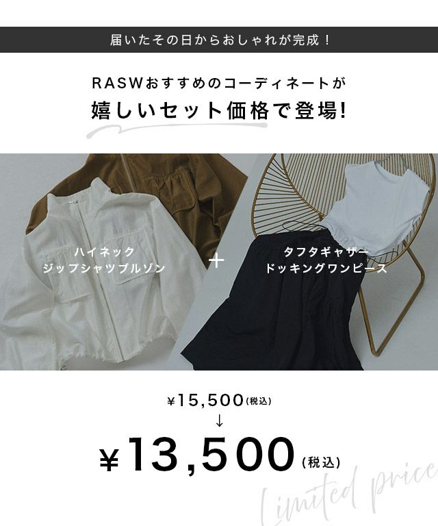 他の画像を見る #送料無料 販売期間 2025/12/01 17:00 〜 [RASW]【コーデセット】タフタギャザードッキングワンピース&ハイネックジップシャツブルゾン ◆送料無料 ¥ 13,500 税込 お気に入りに登録する