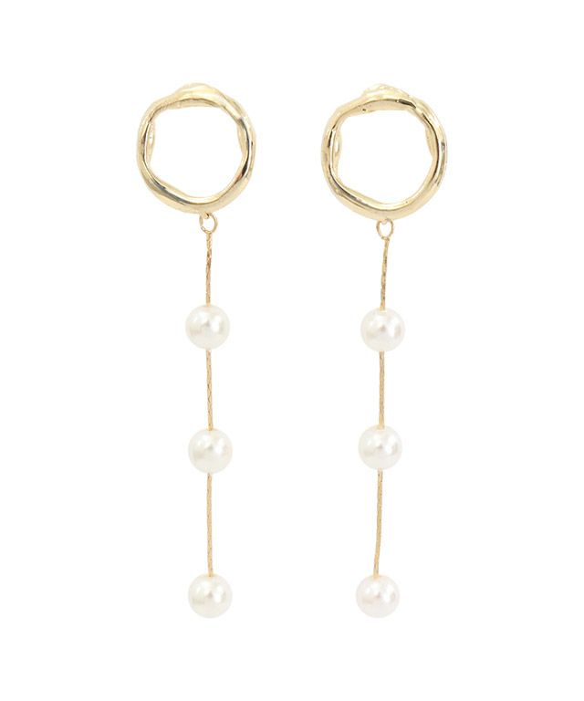 リングデザインにパールをあしらうことで、華奢ながらも表情のあるデザインに。それぞれ、チェーンとリングのデザインベースで女性らしさを引き立たせてくれるピアスです◎