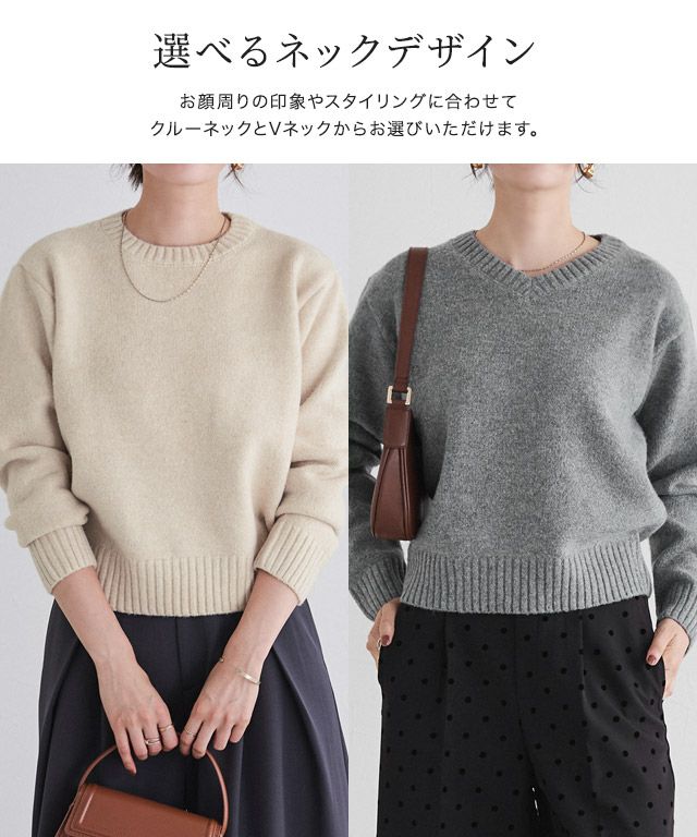 ネックが選べる無地ラメクロップド丈ニット【木村えりなさんYouTube紹介アイテム】