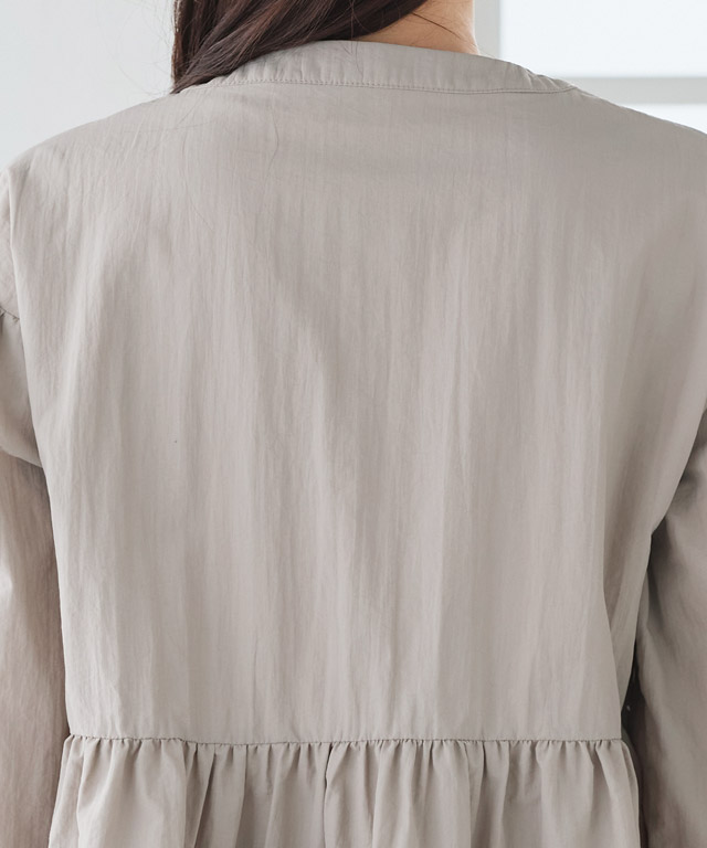 ノーカラーデザインで顔まわりをすっきり見せてくれるティアードブルゾン。立体感のあるティアード切り替えが、羽織るだけで着映えを叶えます。ブルゾンならではのラフさがありながら、ノーカラー仕様でカジュアルになりすぎないところもポイント。程よく広がるシルエットが体型を自然にカバーし、デニムからきれいめボトムまで幅広く合わせやすい一枚です。