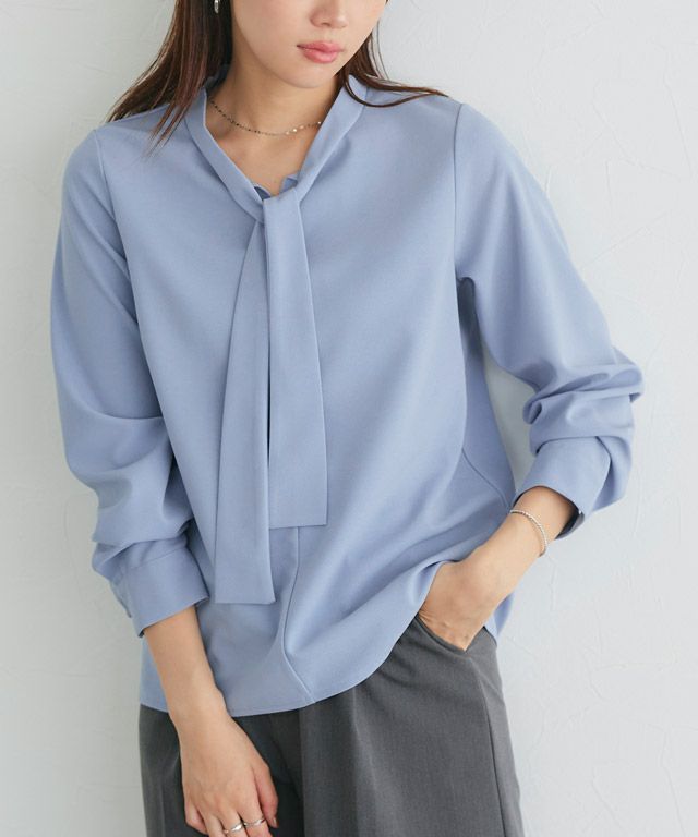 タイデザインがアクセントとなり、コーディネートが広がる一枚。袖口のカフスからタックを施すことで、シンプルなスリーブデザインでもさりげなくアクセントを演出します。