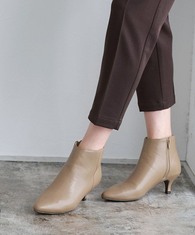 女性らしく、大人な雰囲気へ導いてくれるポインテッドトゥ。ショート丈なので幅広いボトムスにマッチし、バランスのとれたスタイリングに◎ヒールも低いので歩きやすく、安定感があり疲れにくいところも嬉しいポイントです。