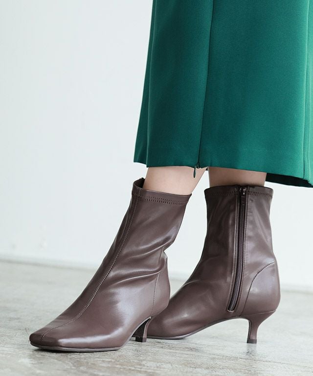 デイリーに使える“スクエアトゥミドル丈ブーツ”