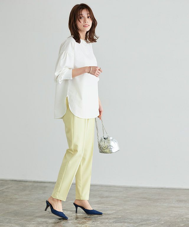 ベージュとオフホワイトはさらりとした肌触りのスムース素材を使用し、大人な印象に。デニムは綿100%素材で旬なスタリングへと導きます。