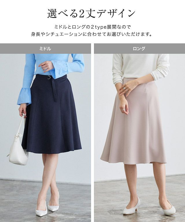 フェミニンなきれいめスタイルに“2丈から選べるベルト付きフレアスカート”