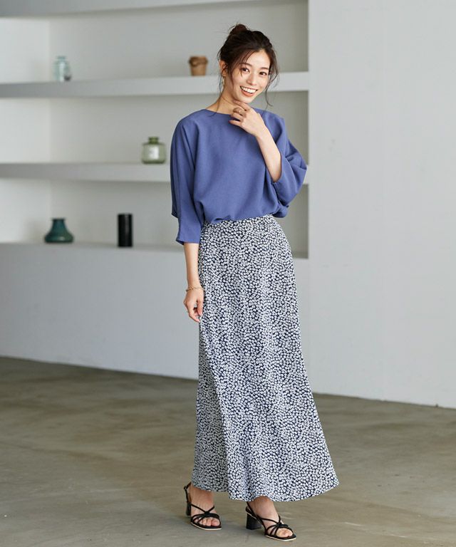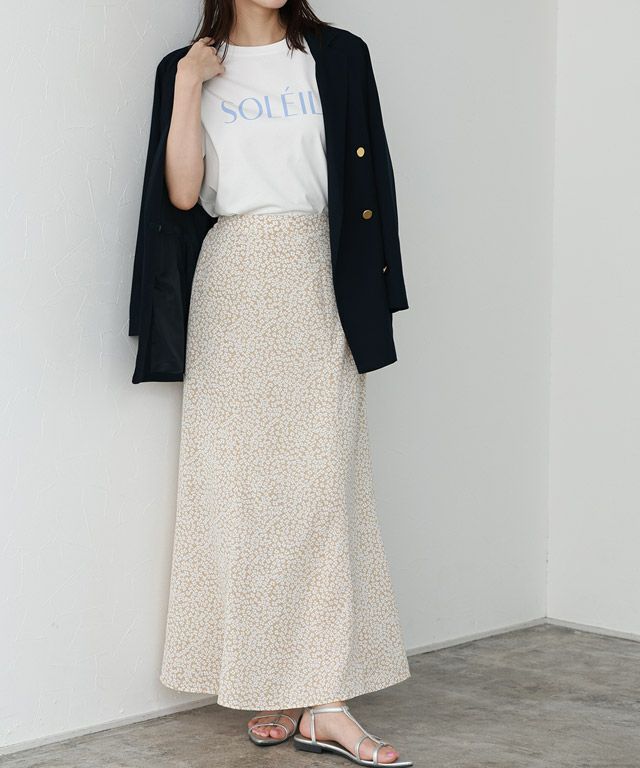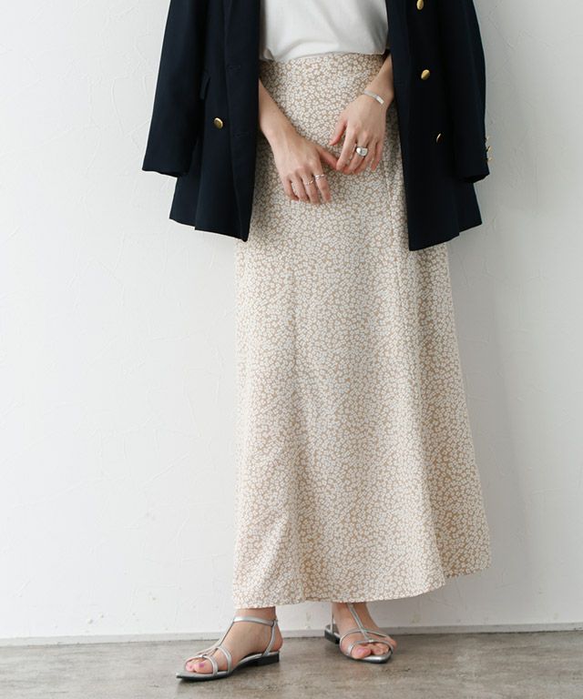 トレンドコーデに仕上がる“花柄フレアロングスカート”