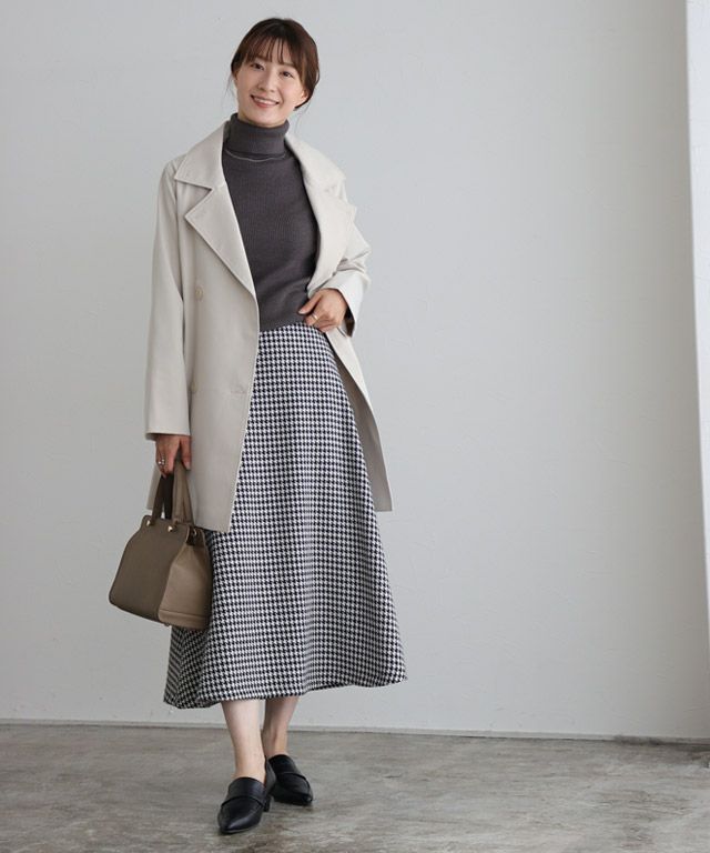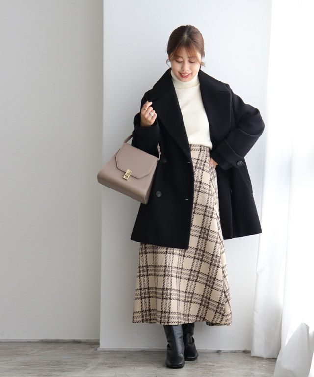N 着丈はふくらはぎ下の丈感でした。ウエストはゆとりがあり、ヒップにはゆとりがあります。しっかりとしたウールタッチ素材で、暖かいです。