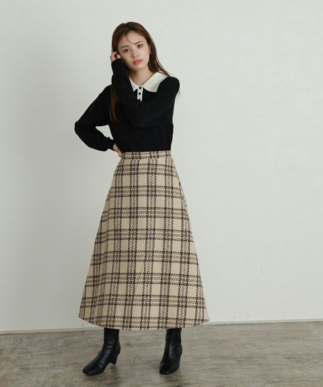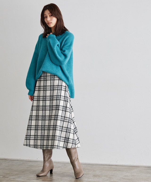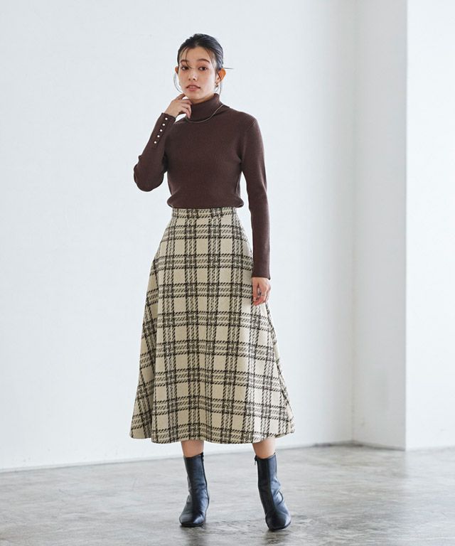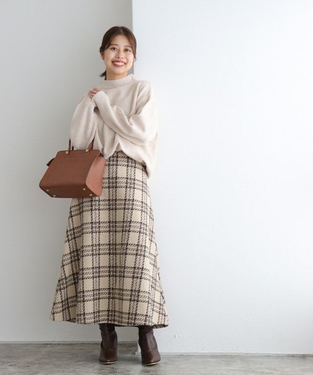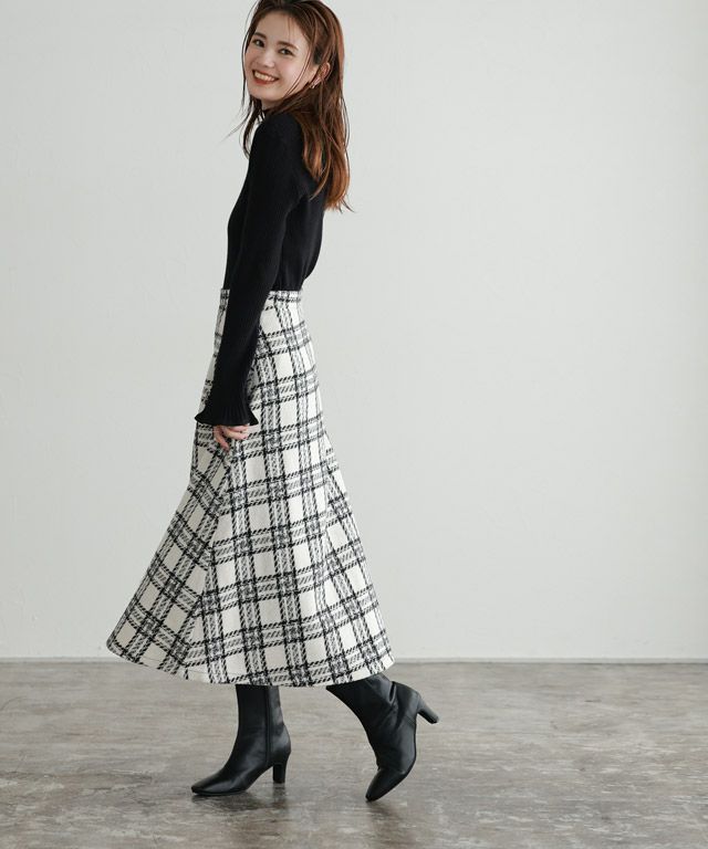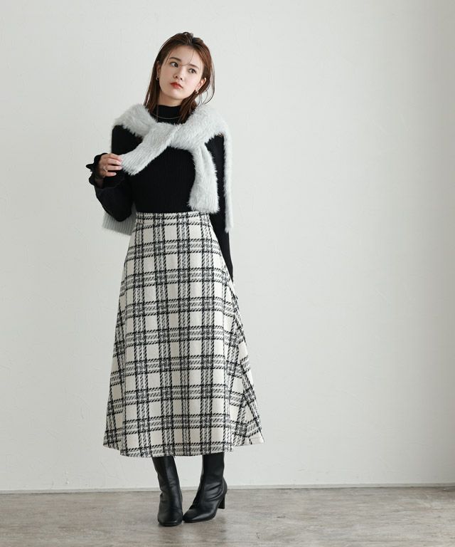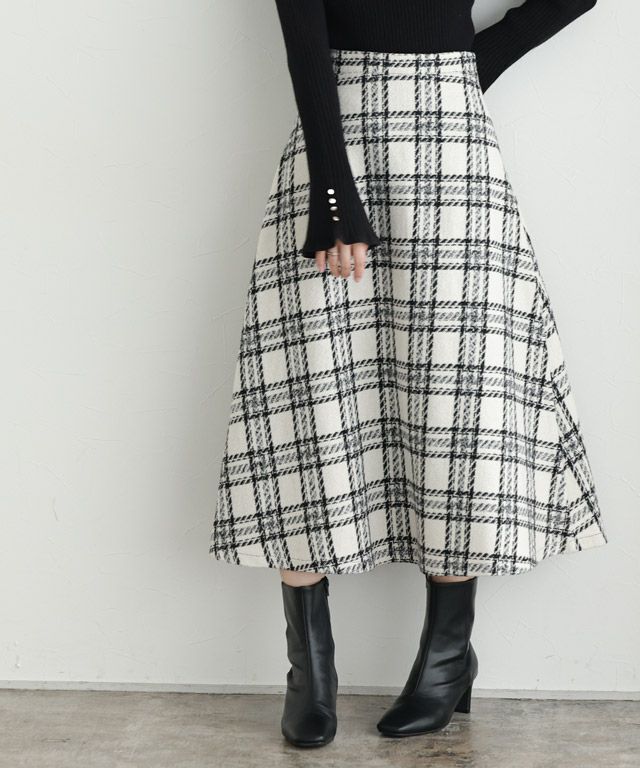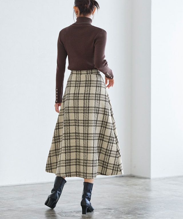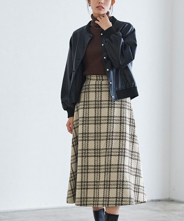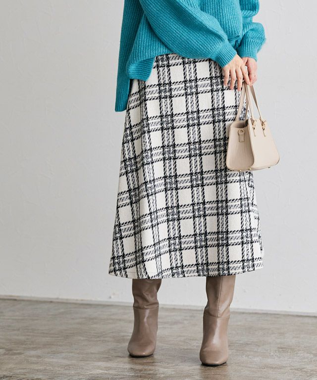 やわらかく暖かみのある起毛素材。ウエスト部分はサイドファスナー仕様でウエスト周りのすっきりとした見え感と履き心地の良さを兼ね備えた一枚。チェック柄ながら大人っぽく上品に仕上がります◎