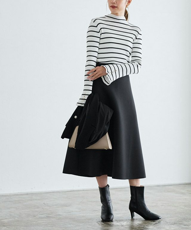 N 着丈は足首が見える丈感でした。ウエストはややゆとりがあり、ヒップにはゆとりがあります。厚みとハリがあるのでフレア感がきれいに出ます。
