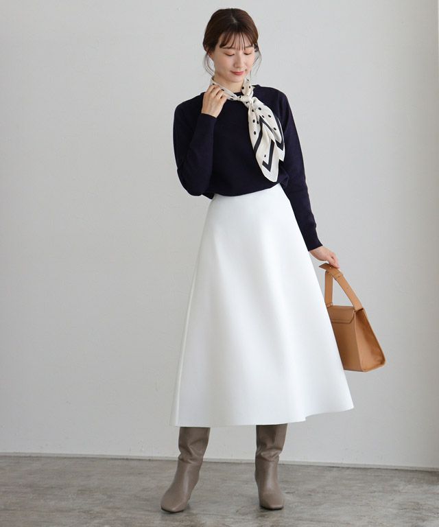 ブラック購入、良かったのでホワイト追加購入。 シルエットがとても綺麗で軽い。裾は切りっぱなし仕様ですが、ほつれることはなさそう。 長い期間着用出来そうなスカートで満足です。 (152センチ/ブルベ夏/ウエーブ)