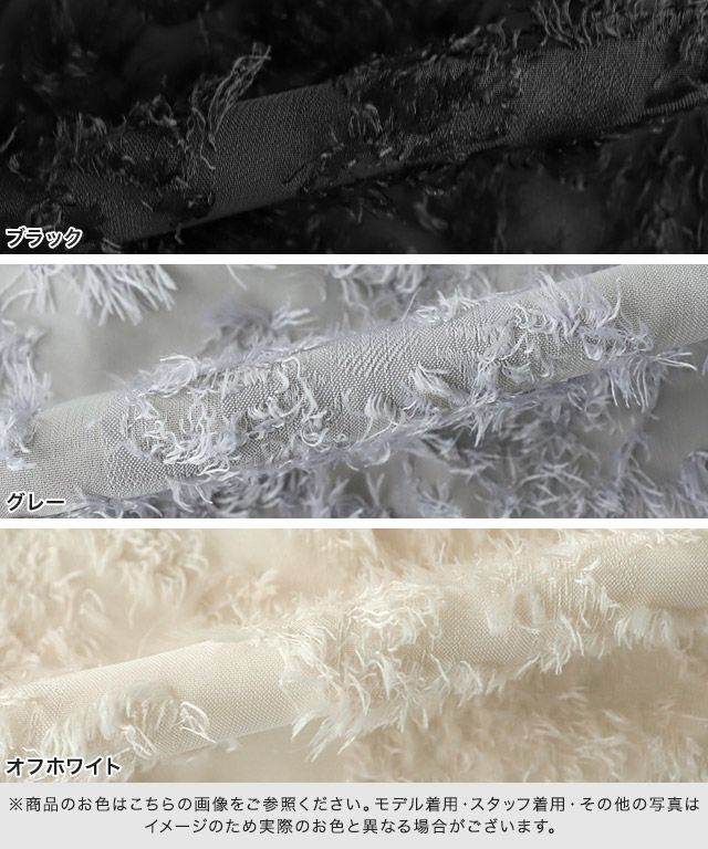 毛足のあるフラワージャカードが表情をプラスしてくれ、旬なスタイリングへと導きます。