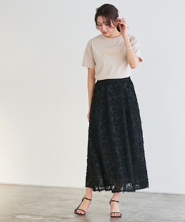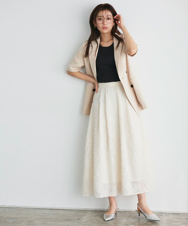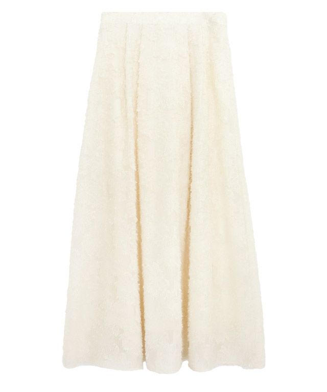フェミニンな装いに導く“フラワーフリンジジャカードスカート”