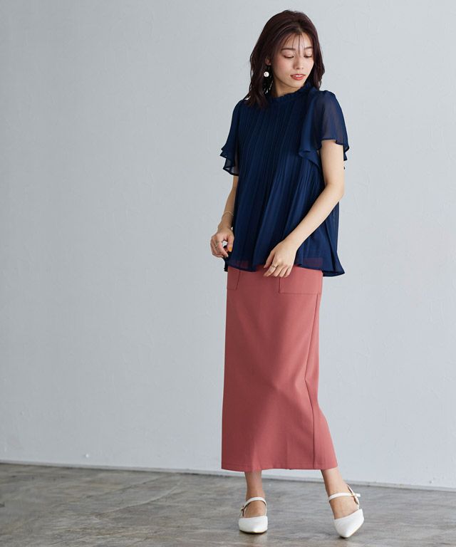 カラーがスタイリングのアクセント“サイドフラップポケットIラインスカート”
