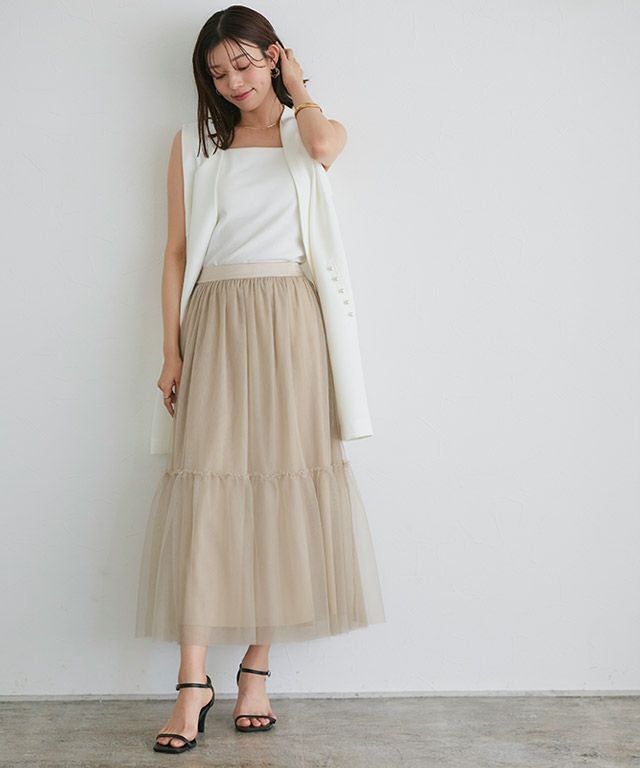 トレンドライクなスタイリングに導く“ティアードチュールスカート”