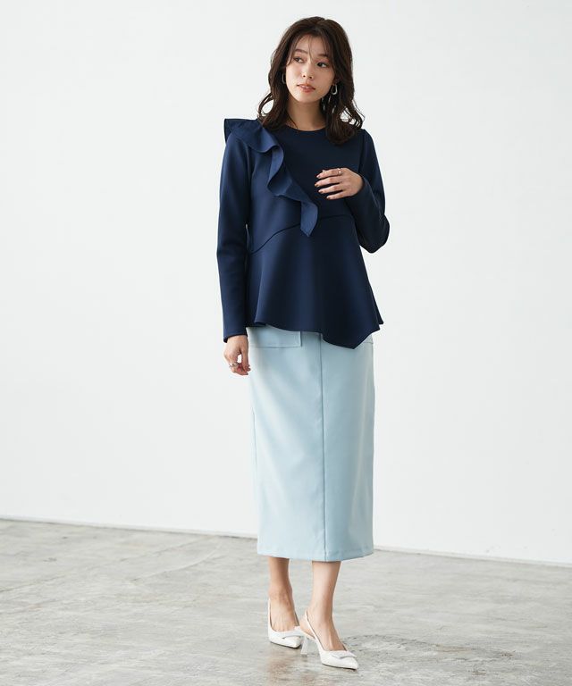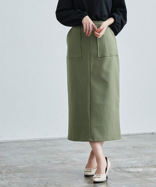 シンプルだからこそ合わせやすい“ポケットデザインIラインスカート”