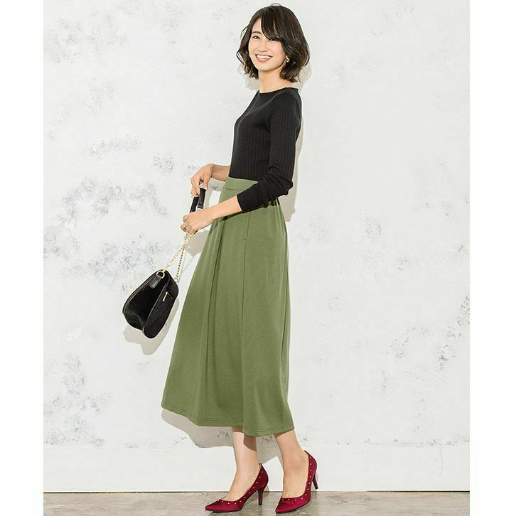 上品な女性らしさ溢れる“ポンチ素材タックスカート”