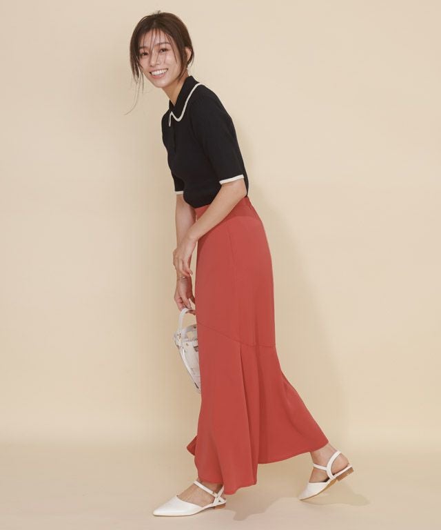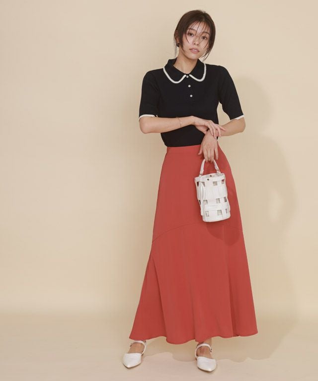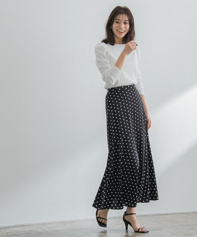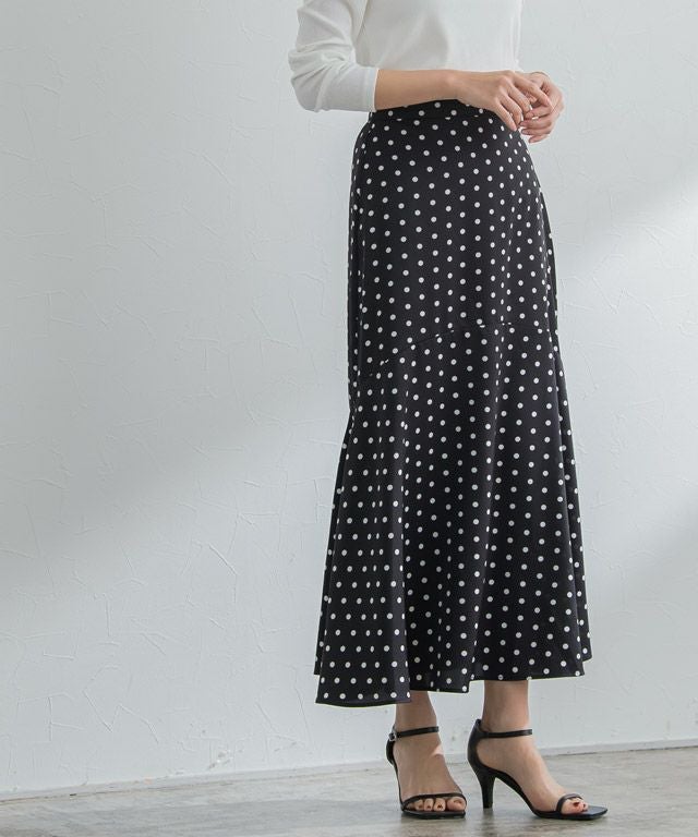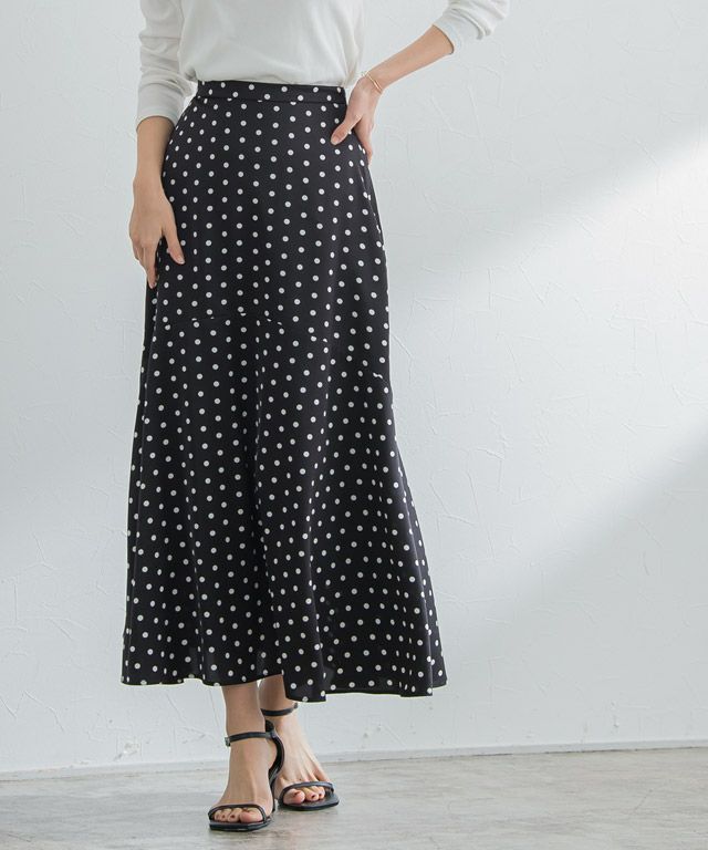 女性らしい印象に導く“選べるマーメイドシルエットスカート” 柔らかく落ち感のある素材が上品見え。ドット柄はシーズンムードを漂わせ、マリンな印象へ導きます。 ラウンドで切り替えることでスタイルアップを叶えてくれる一枚。マーメイドシルエットが女性らしく、素材の落ち感も相まって上品な印象に仕上げてくれます◎ 【ブランド】 Pierrot(ピエロ)