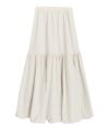 裾のバルーンと、たっぷりと入ったギャザーがポイントのスカート。ギャザーデザインで切り替え位置にもこだわり、トップスの丈バランスもとりやすいようにしています。ウエスト周りはゴム仕様で楽に着用していただけます。