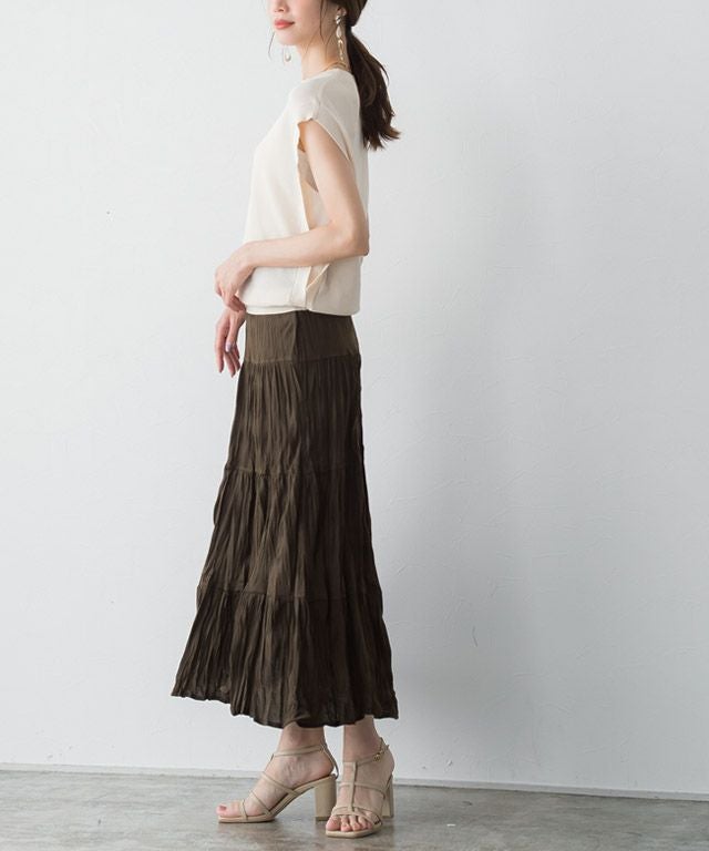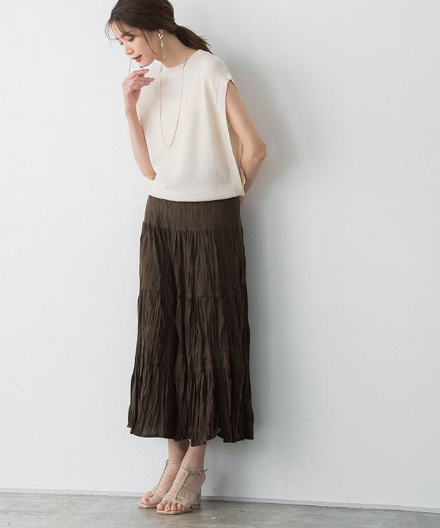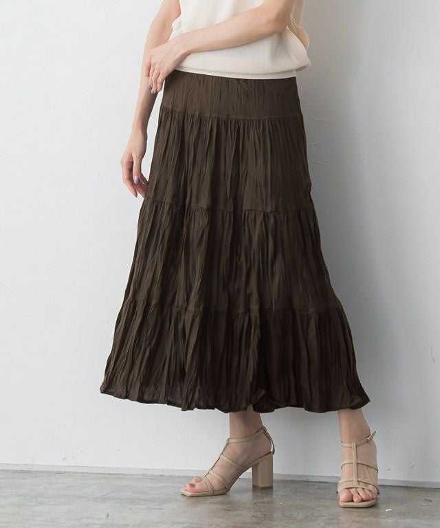 トレンド感と女性らしさをプラスする“ティアードクリンクルスカート”
