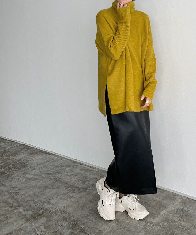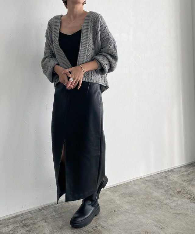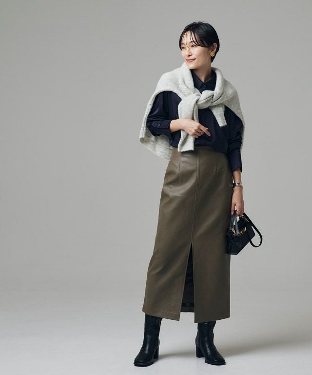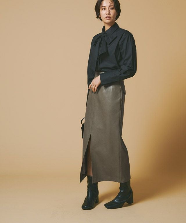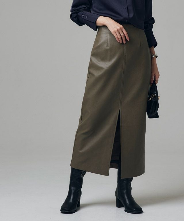 [RASW]フェイクレザースリットIラインスカート【スピード配送】