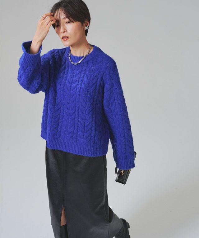 また、ニット製品は生産の過程上「生地を織る際の糸の継ぎ目」繊維の「混紡」、プレス加工、製品洗い加工によって形やサイズ(5cm前後)に誤差が生じる場合がございますが品質上の問題はございません。