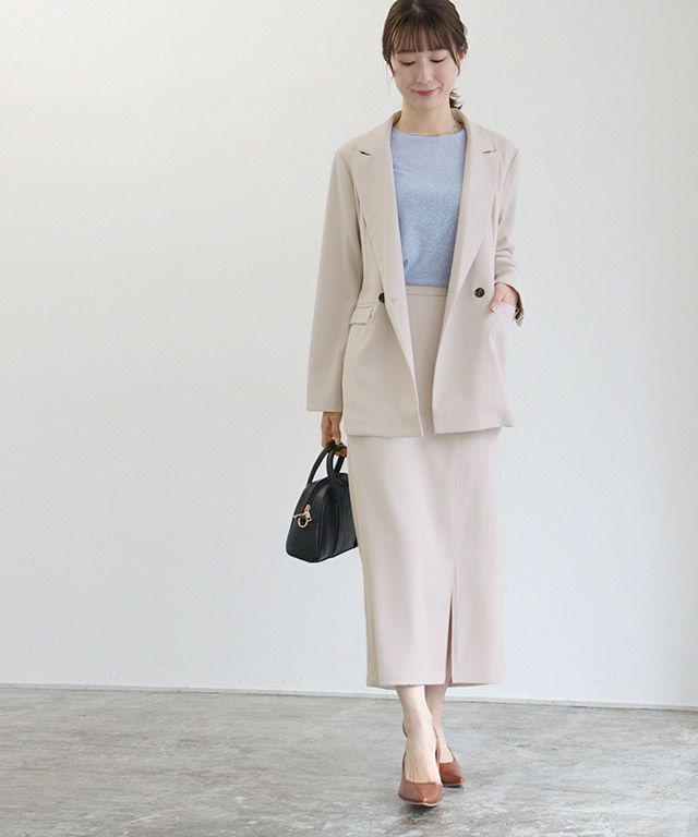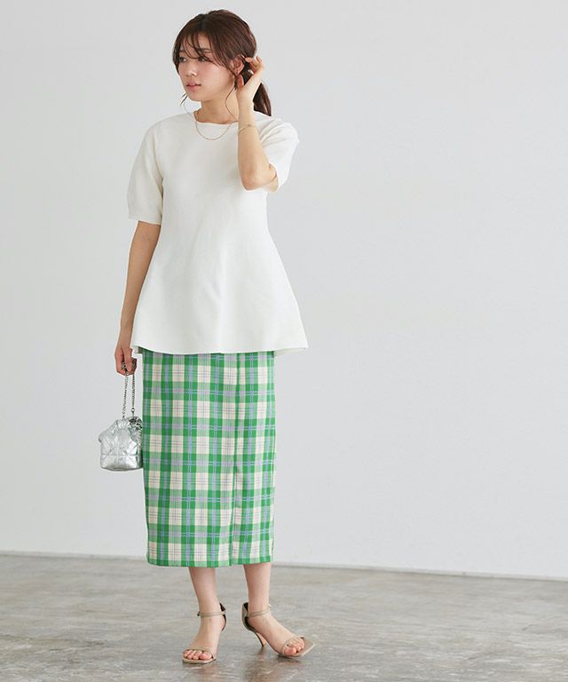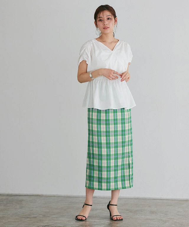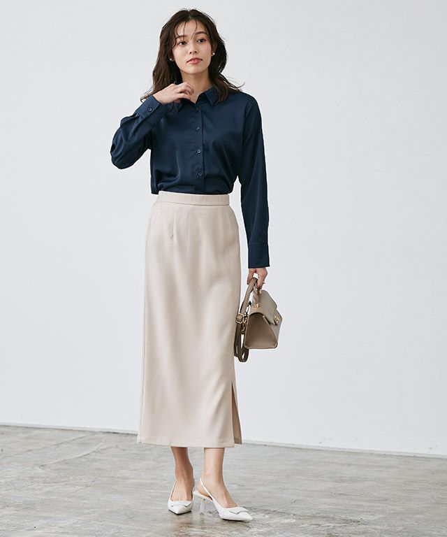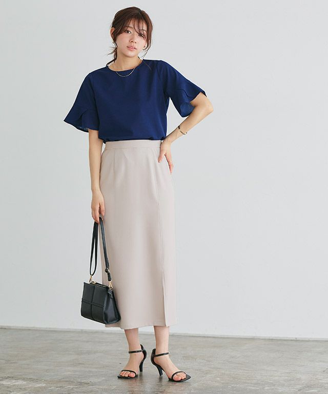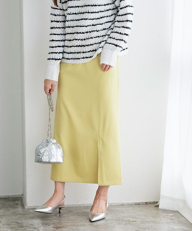 すっきりと見せてくれるナローシルエットに前に施したスリットが程良い抜け感とアクセントをプラス。足さばきがしやすいところも、こだわりのポイントです。シンプルなディテールなのでどんなトップスとも合わせやすい一枚◎