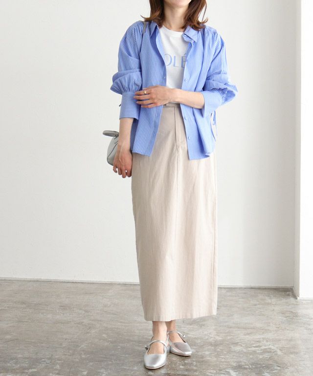 カジュアル見えするコットン素材でラフな雰囲気漂うスカート。涼し気な素材感が季節の変わり目に活躍してくれます。