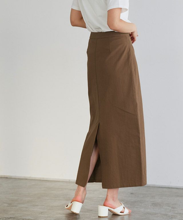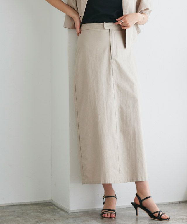 カジュアル見えするコットン素材でラフな雰囲気漂うスカート。涼し気な素材感が季節の変わり目に活躍してくれます。