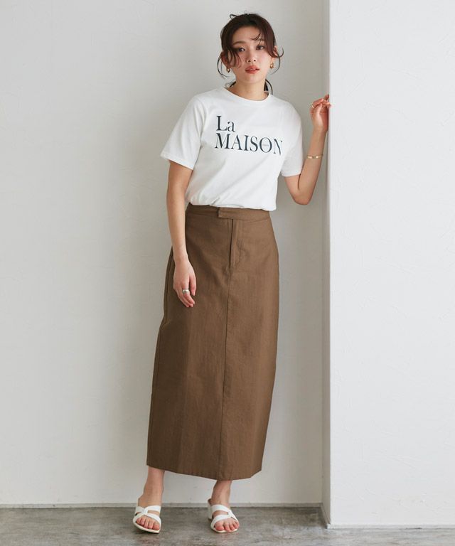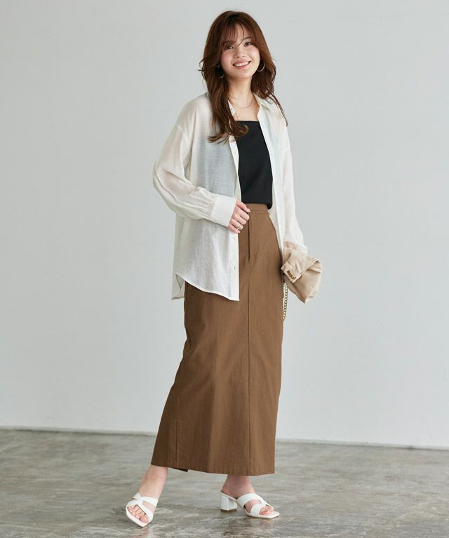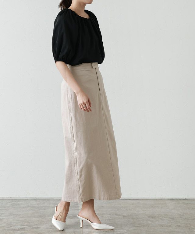 カジュアル見えするコットン素材でラフな雰囲気漂うスカート。涼し気な素材感が季節の変わり目に活躍してくれます。