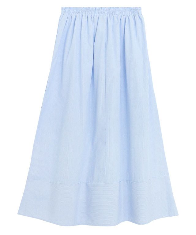 シーズンムード漂う“細ストライプ裾切り替えギャザースカート”