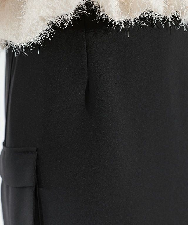 サイドに施したギャザーとスタイルアップ叶うIラインシルエットが大人レディ感を引き立てる一枚。フロントサイドの裾部分にはスリットをプラスし、大人の抜け感をプラス。カーゴデザインがトレンドライクに決まるアイテムです。