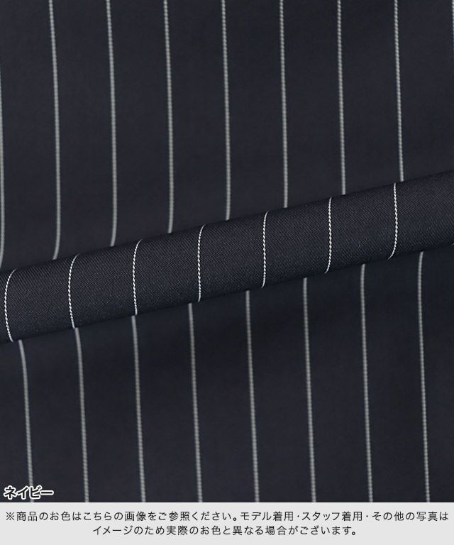 ミニマルなフロントデザインに、バックはインバーテッドプリーツを施し、動くたびふわりと揺れ、後ろ姿に印象的な一枚です。ストライプ柄が縦のラインを強調し、すっきりとした印象に導きます。