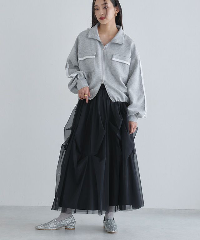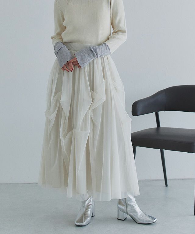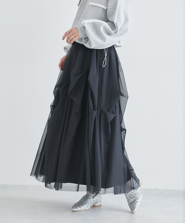 トレンドライクなタックデザインを贅沢に施したチュールスカート。一枚着るだけでコーデの主役になるアイテムです。