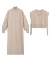 オーバーシルエットのVネックベストと、Iラインのハイネックワンピースのセットアップ。セットで着用することで、トレンド感のあるレイヤードスタイルが叶います。ワンピースは一枚でも着用でき、ベストは他のトップスとのレイヤードにも着回すことができます。