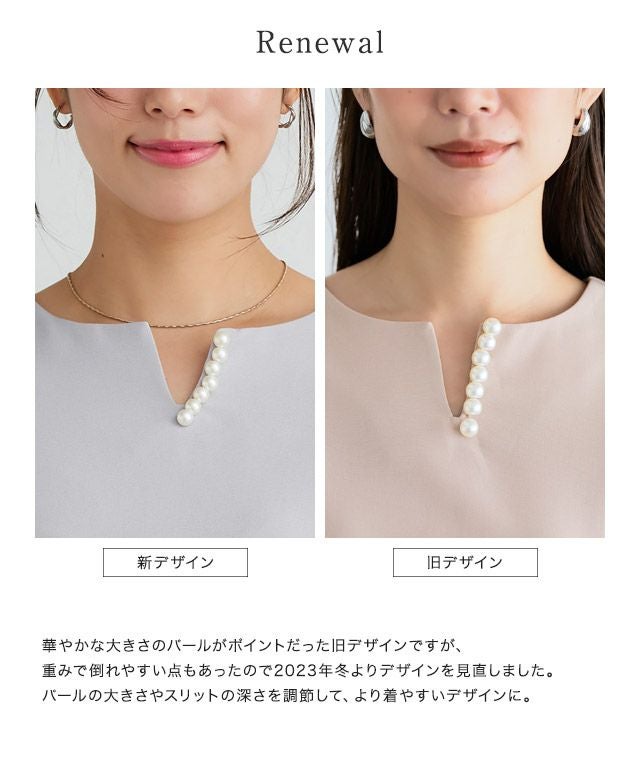 キーネックパールブラウスセットアップ【スピード配送】◆送料無料