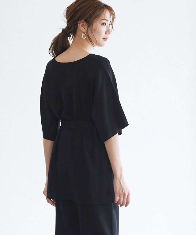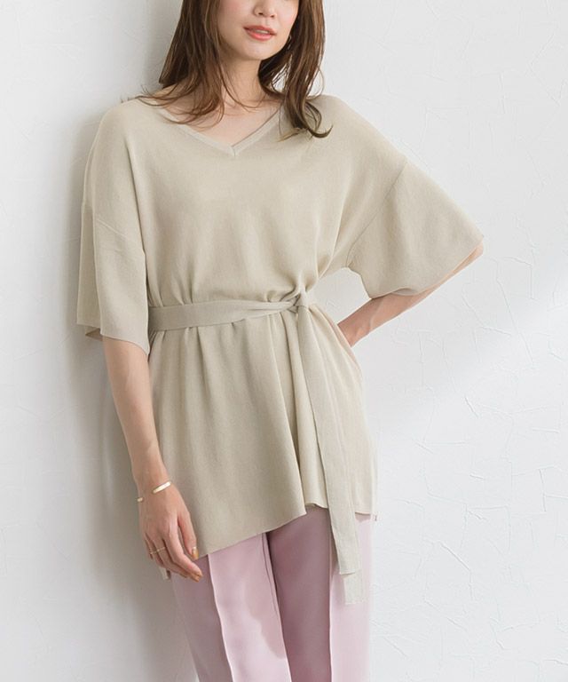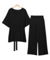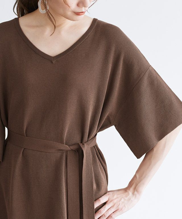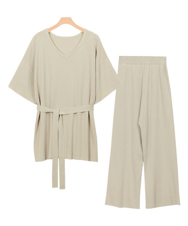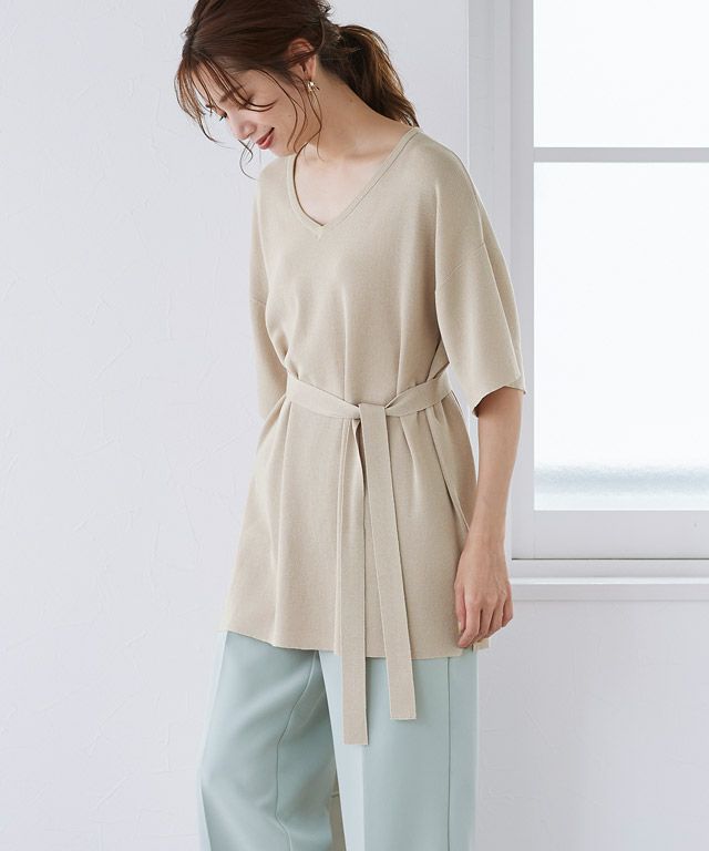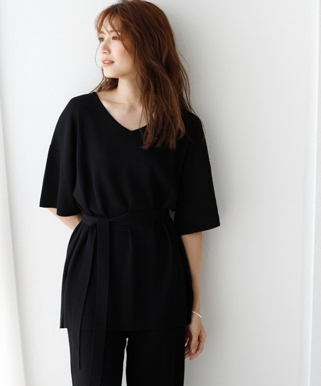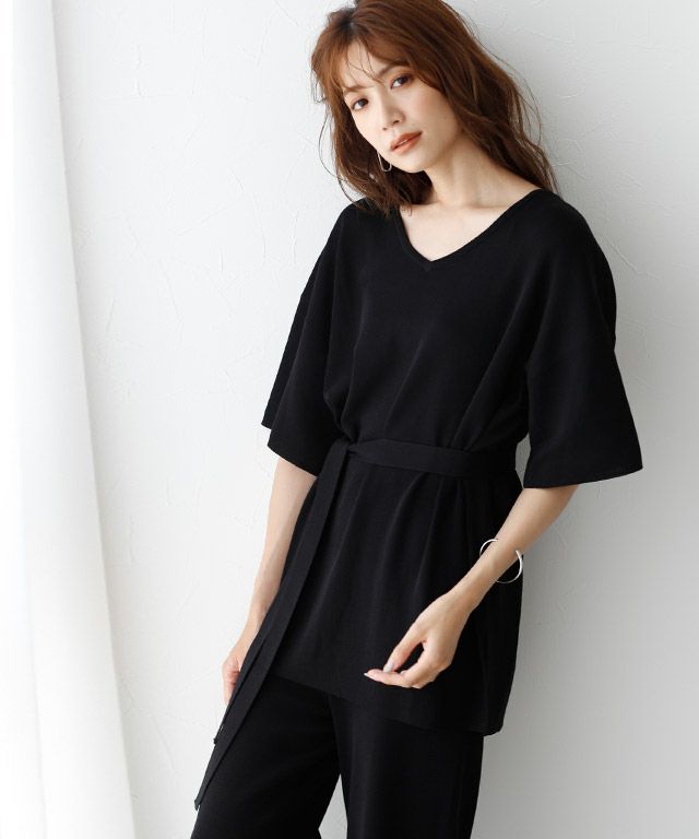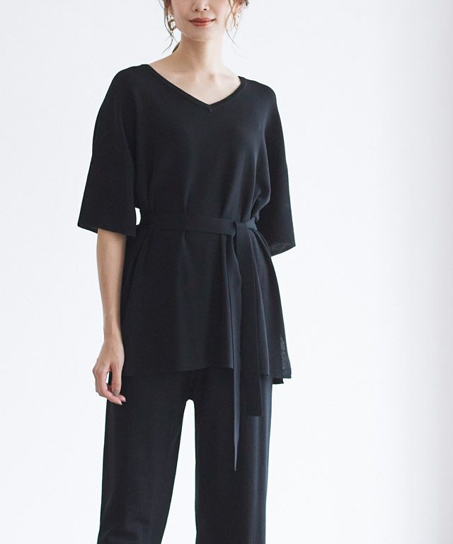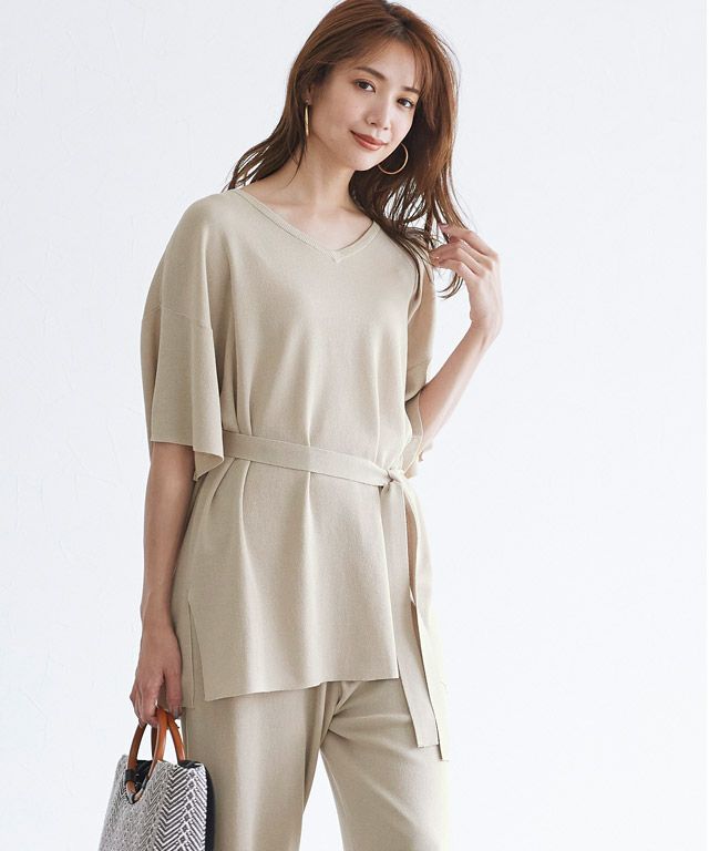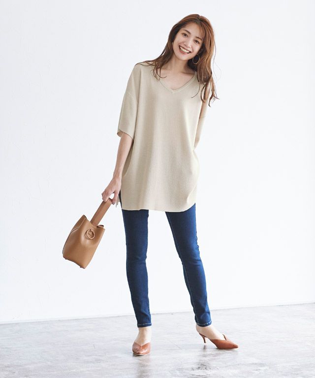 上:着丈はお尻がすっぽりと隠れる丈感でした。袖丈は肘下の丈感で、Vネックも開きすぎない程よいラインでした。 下:着丈は足首下です。丈が長く、床についてしまいます。ウエストが折れるので折れば問題なく着用できます。ウエストはゴムなので楽ちんです。シャリ感のある涼し気な素材です。 |