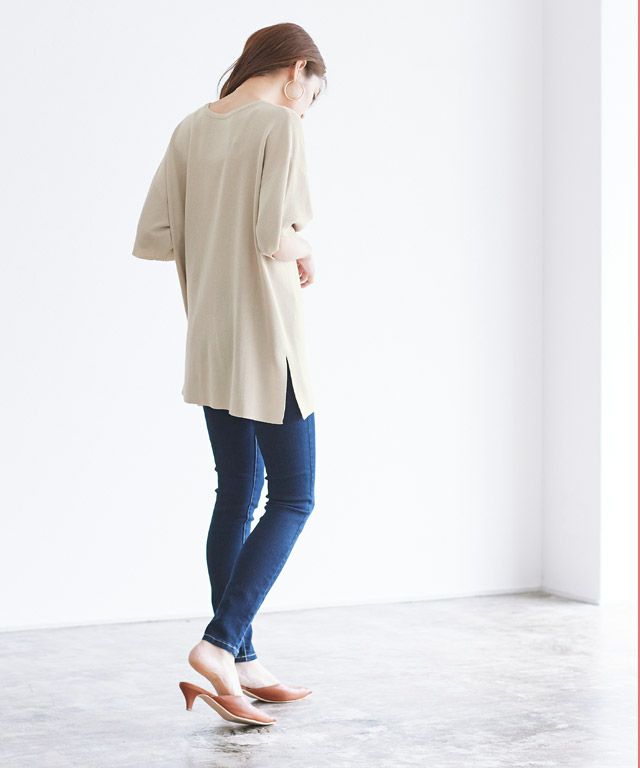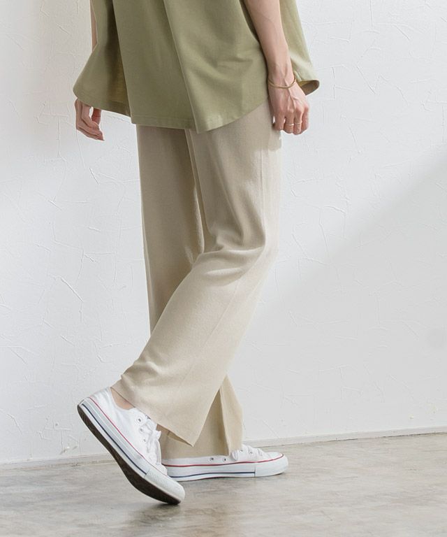 下:ウエスト位置に合わせ足首上でした。前股上が深いので少し腰位置を落として穿くことも可能です。ウエストはゴム仕様でちょうどです。共通:薄手のサラッとした清涼感のある生地です。全体的にゆとりがありリラックスして着用できます。 |