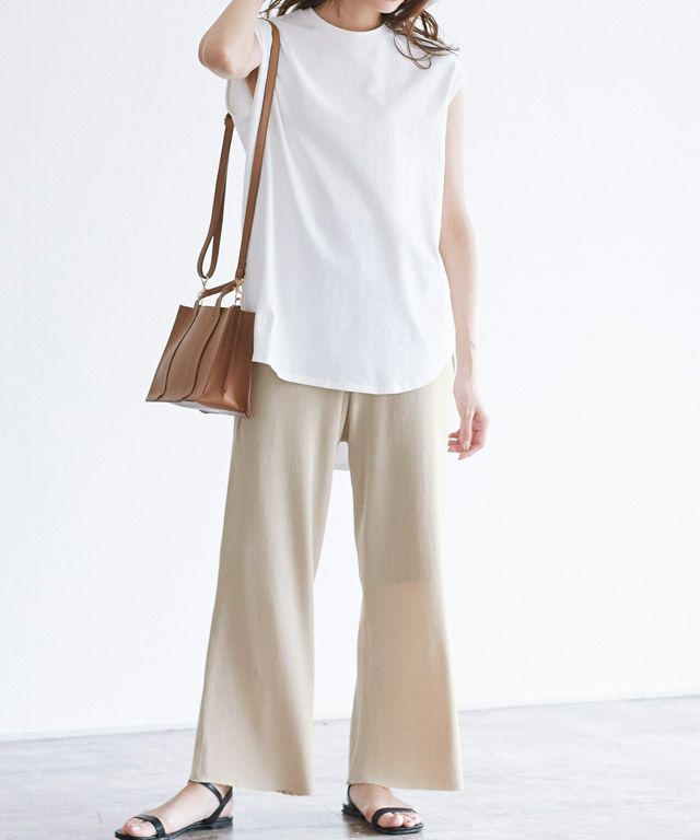上:着丈はお尻が隠れる丈感でした。袖丈は肘が隠れる程度です。脇口が広めでした。 下:着丈は足首上の丈感でした。ウエストやヒップは程よくゆとりがありました。 共通:全体的に窮屈感なく着用できます。さらっとした肌触りの薄手のニットで夏でも着やすいです。