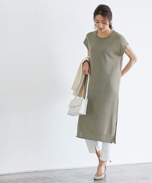 ロングニットの下から除くプリーツが絶妙な可愛さ!ニットも夏仕様のサラリとした質感で、気持ちよく着れそうです。ただ高身長なのでプリーツ部分がもう少し伸ばせたらもっと良かったかな。でもこれからの季節大活躍しそうですね。