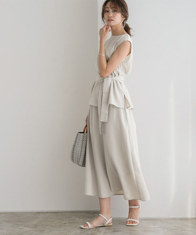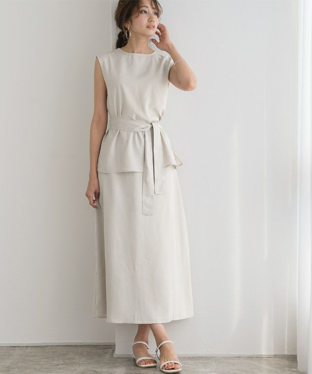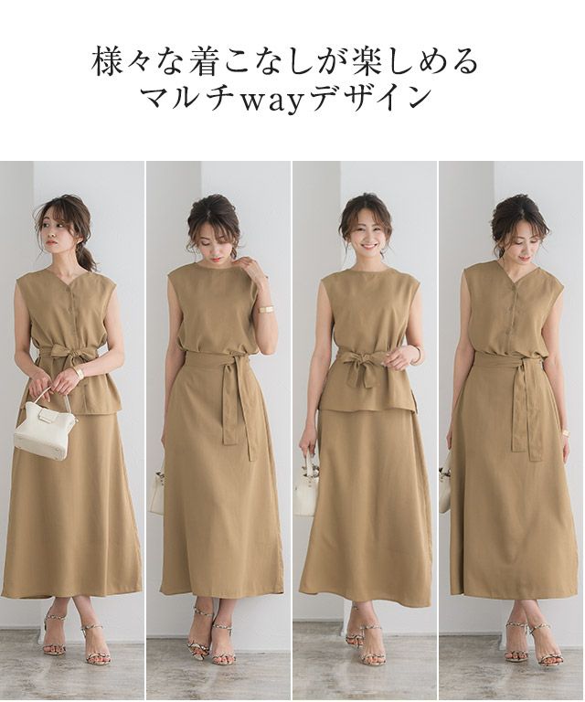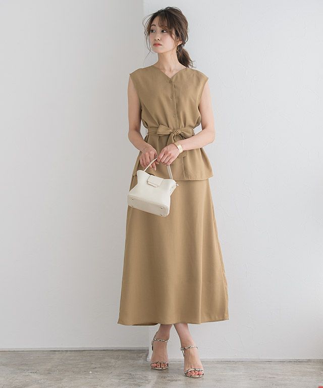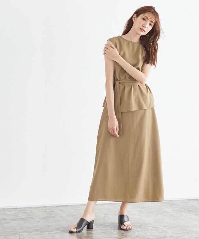 トップス:着丈はお尻が半分隠れる丈感でした。袖丈は肩が隠れる程度でした。脇口はゆとりがあり、身幅は窮屈なくちょうどです。 スカート:着丈は足首が隠れない丈感でした。裏地は長めでスネ辺りまで付いています。ウエストはややゆとりがあります。フレアラインなので窮屈なところはありませんでした。 共通:さらっとした肌触りで軽く、薄手の生地なので涼し気です。