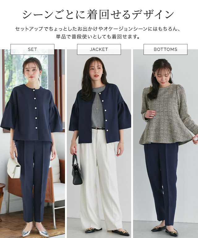 セットアップでちょっとしたお出かけやオケージョンシーンにはもちろん、単品で普段使いとしても着回せます◎