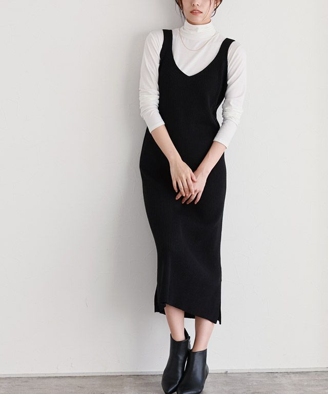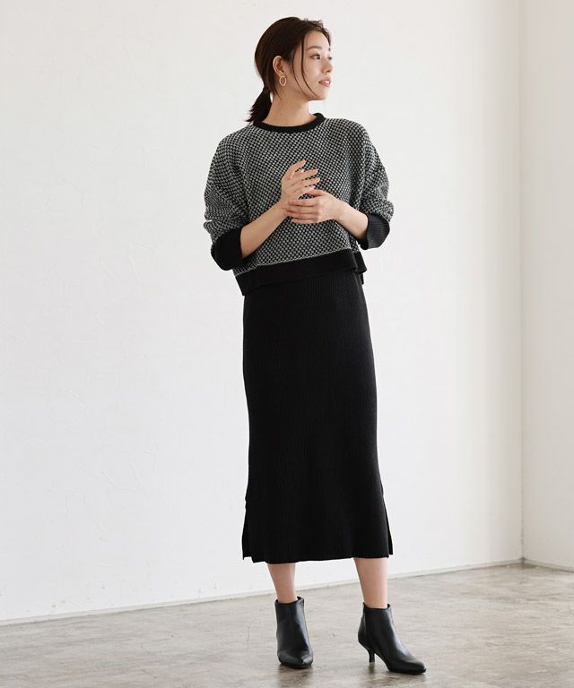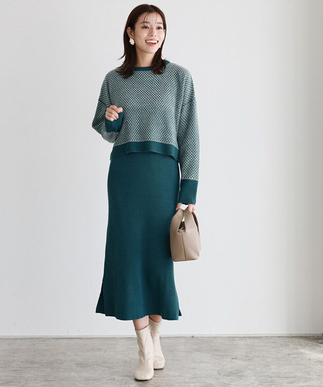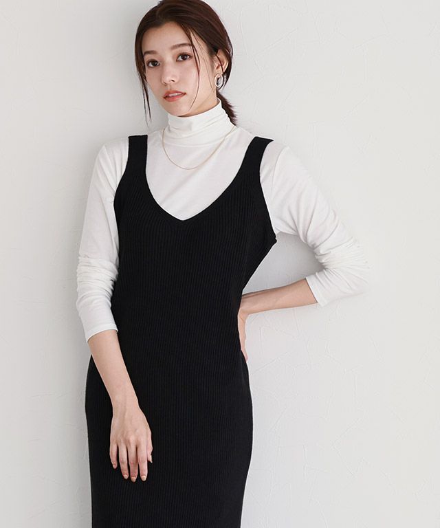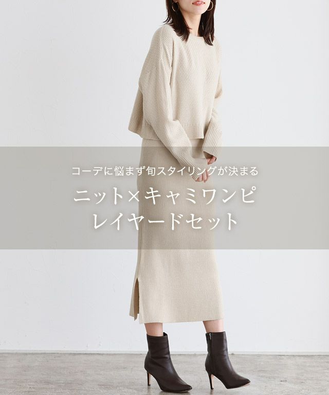 コーデに悩まず旬スタイリングが決まる“ニット×キャミワンピレイヤードセット”