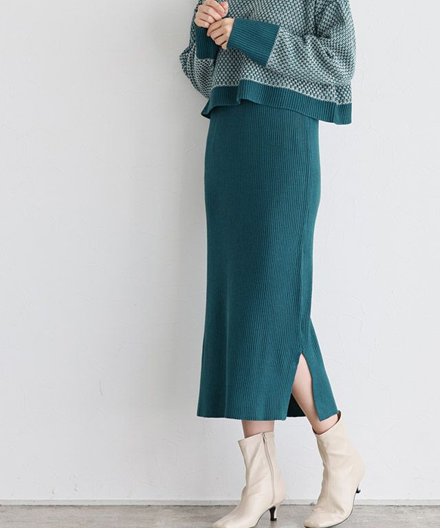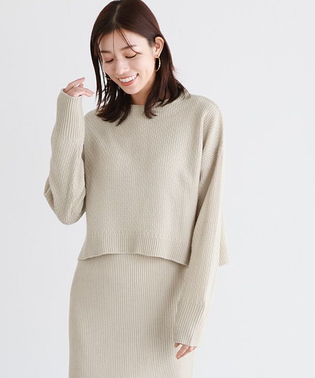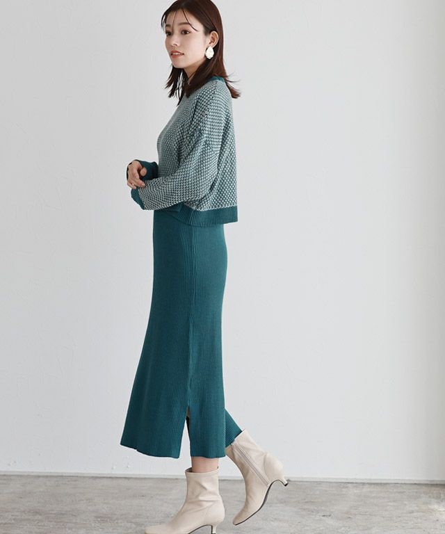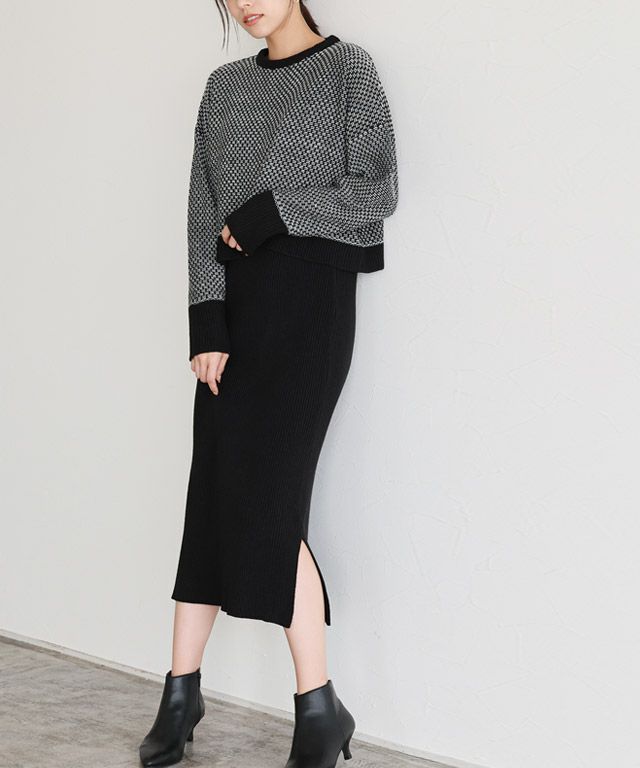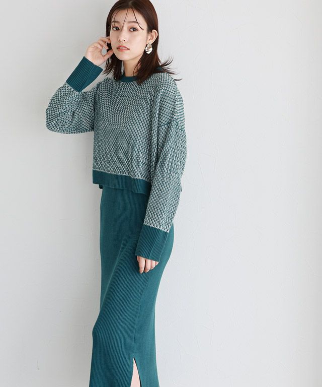 ニットトップスは、表面感のあるジャガード柄で配色と無地をお好みでお選び頂けます。ニットキャミワンピはしっかり厚みのあるリブ素材で仕立てました。