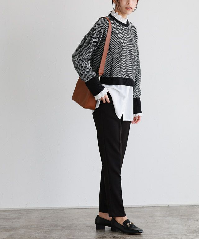 トップスは短めの丈でスタイルアップできます。ニットワンピースも体のラインは少し拾いますがしっかりめの生地でした。着こなしの幅が広がります。