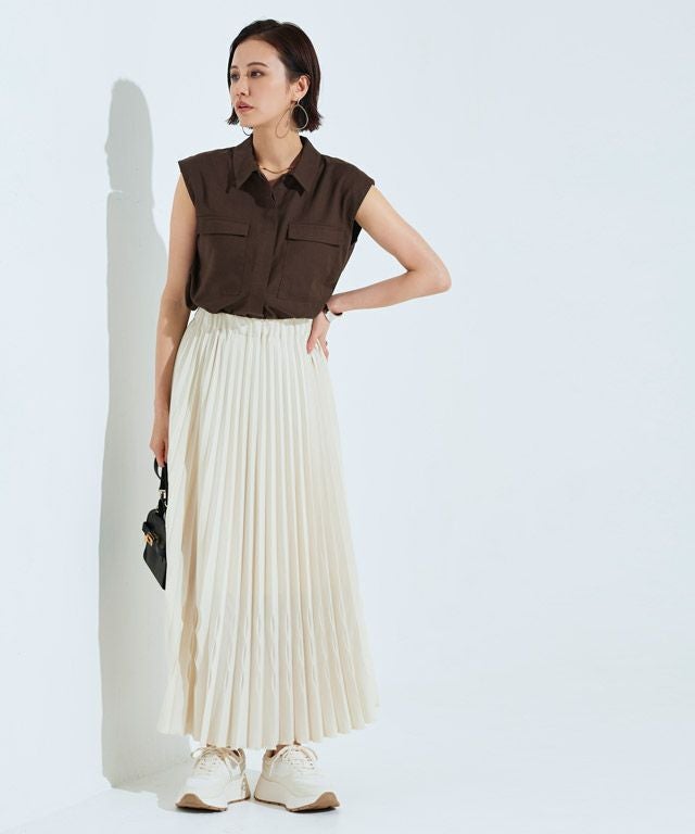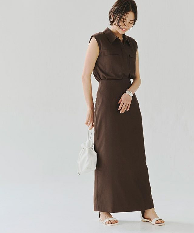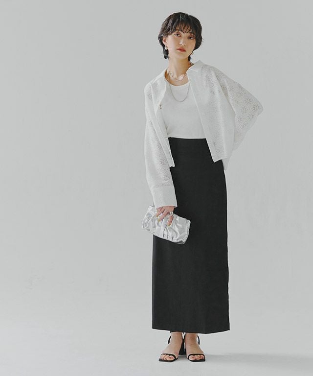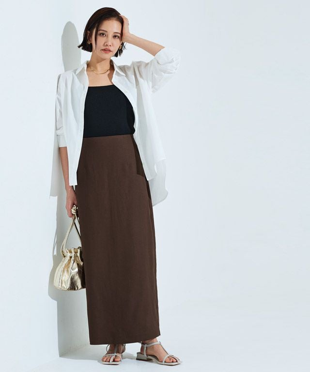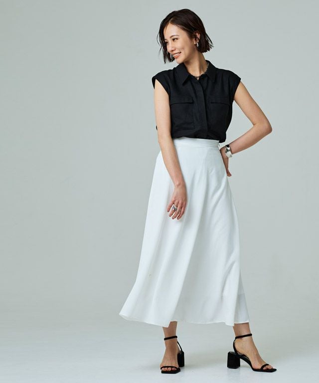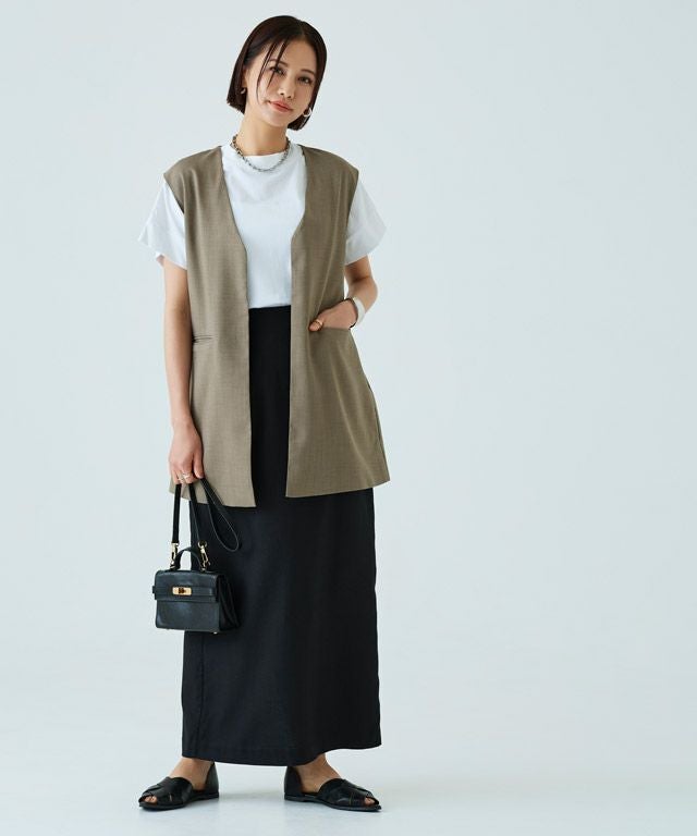 [スカート]着丈は足首が隠れる丈感でした。ウエストはややゆとりがあり、ヒップには程よいゆとりがあります。スカートは長めなのでヒールなどの方がよさそうです。 |
