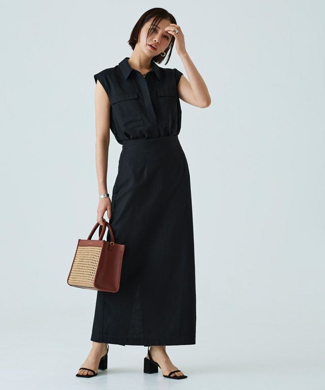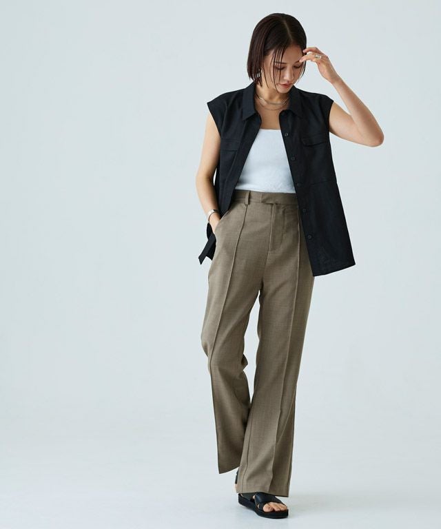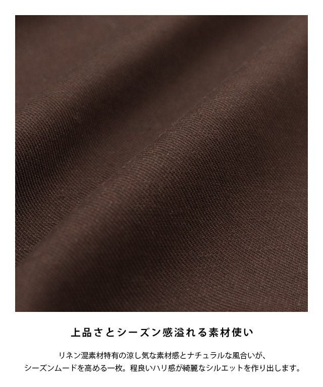 [トップス]着丈はお尻が3分の2隠れる丈感でした。袖丈は肩が隠れます。身幅はゆとりがありました。リネン混の素材が夏でも着心地が良いです。表面感がリネン特有のガサガサ感は少ないので、キレイめなスタイリングが可能です。